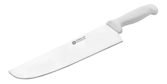 DESCRIPCIÓN DEL PRODUCTO: MODELO 2912 Para uso Sanitario, autorizado por el SENASA. Su diseño brinda absoluta comodidad para todo tamaño de mano y la gran capacidad de corte se mantiene durante toda la jornada con solamente la ayuda de una buena chaira. Con hoja de acero inoxidable 440 PLUS y empuñadura blanca de polipropileno, aptos para ser esterilizados a altas temperaturas. El acero de este cuchillo es una aleación que con alto contenido de Carbono, Cromo y Molibdeno, cuya especial aplicación es para cuchillería profesional. °Largo total: 43.5 cm °Largo de la hoja: 30 cm °Espesor: 2.8 mm °Peso: 335 g --------------------------------------------------------------------------------------------------------------------------------------